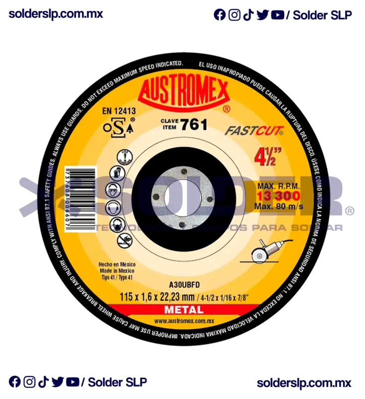 Disco De Corte 4-1/2" X 1/16 Cod. Aus 761 cantidad