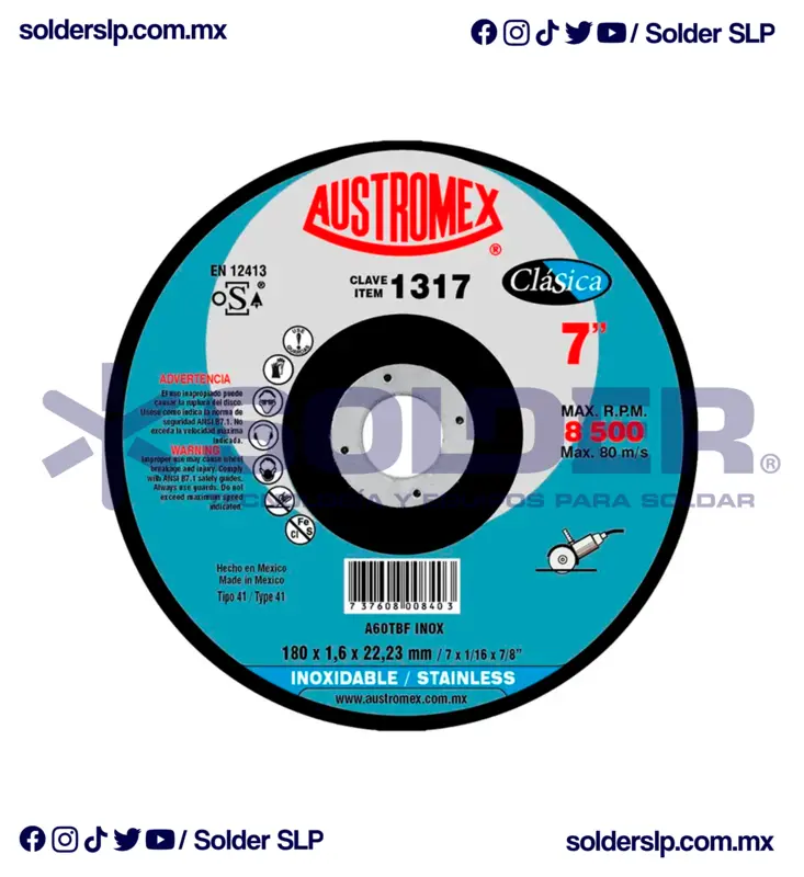 Disco De Corte 7″ Para Acero Inox Plano Cod. Aus 1317