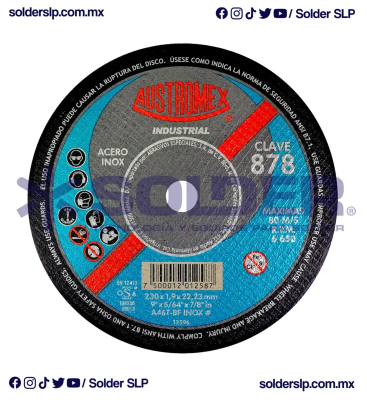 Para corte de acero inoxidable de 230 x 1.9 x 22.23 mm.