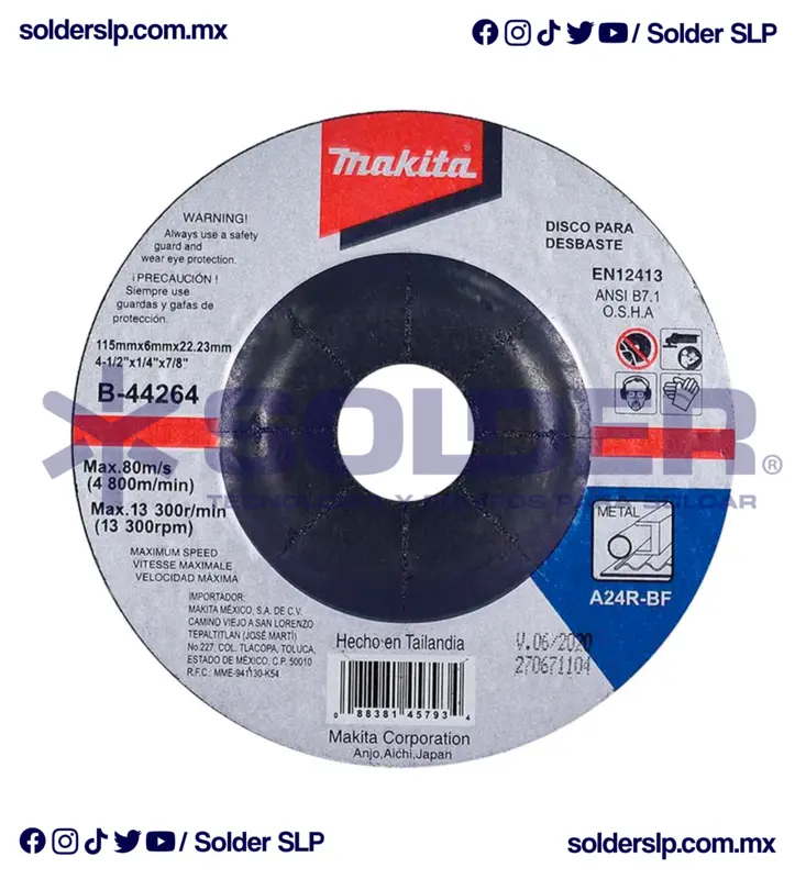 DISCO ABRASIVO PARA DESBASTE MAKITA B-44264 DE 4 -1/2
