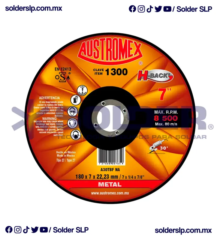 Disco De Desbaste 7″ H. Back Cod. Aus-1300