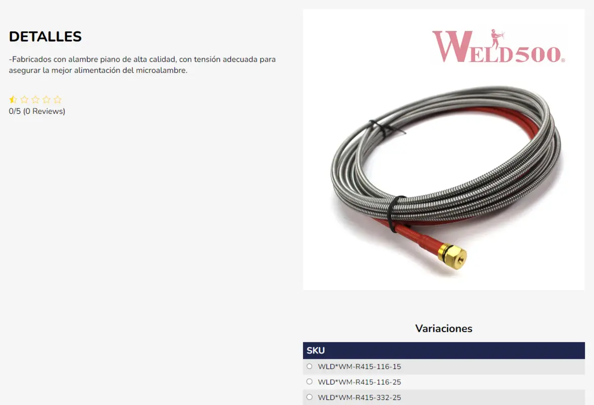 Liner 0.030-0.035 15Ft 180/200/250A Cod. Kcm*K42-3035-15 cantidad