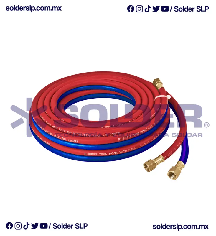 Cotiza por WhatsAppManguera de goma doble para uso con Oxígeno/ Acetileno en procesos de corte y la soldadura y afines. No apta para LPG, MPS y CNG.