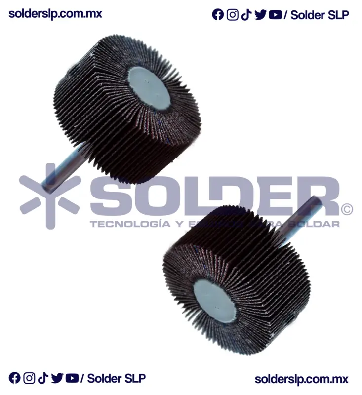 Rueda flap con vástago de óxido de aluminio, grano 60, de 50 x 25 x 6.4 mm.